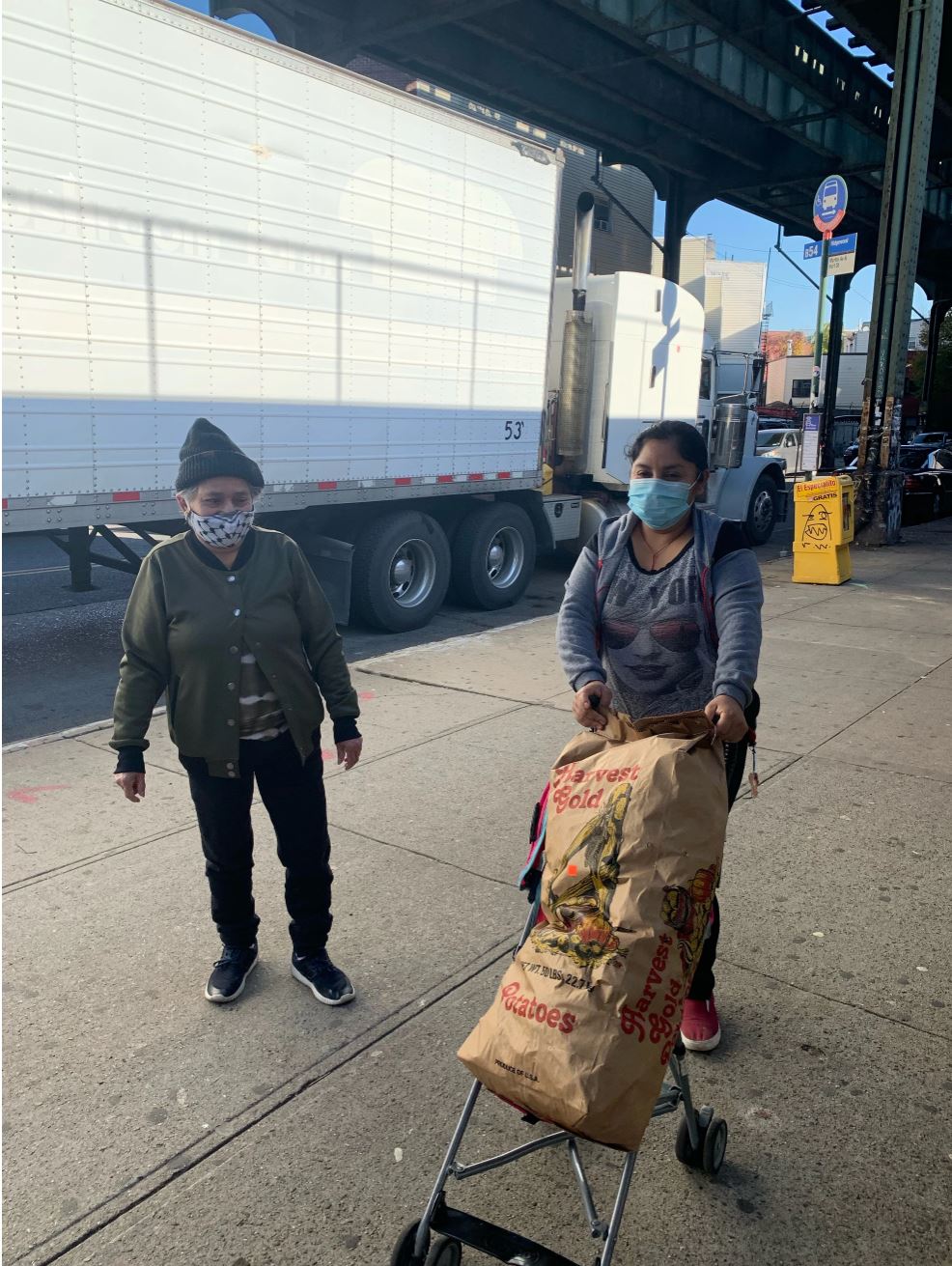 Kiki McComb, Co-Lead of the Fundraising Team at The Farmlink Project, learned about the community fridge development while attending a Thanksgiving delivery of 42,000 pounds of purple potatoes in Bushwick, Brooklyn this past Saturday. LaJoie Growers, a farm located in Van Buren, Maine, that The Farmlink Project has partnered with since May, provided the potatoes. The Farmlink Project also worked alongside OurFoodNYC for this delivery. Paperboy Prince (pronouns: they/them), operates this group, whom Kiki described as a musical artist and community activist in NYC. The delivery took place in front of the PaperboyPrince.com Love Gallery located at 1254 Myrtle Avenue in Brooklyn. Earlier this fall, Owen Dubeck, head filmmaker for The Farmlink Project, helped coordinate the delivery and donation of a community fridge to Paperboy Prince. According to Owen, the fridge will be situated outside the Love Gallery to provide food to a neighborhood that has experienced extremely high rates of food insecurity. Kiki spoke to several volunteers at the delivery this past Saturday to learn more about the COVID-19 pandemics effect on New Yorkers access to fresh food.