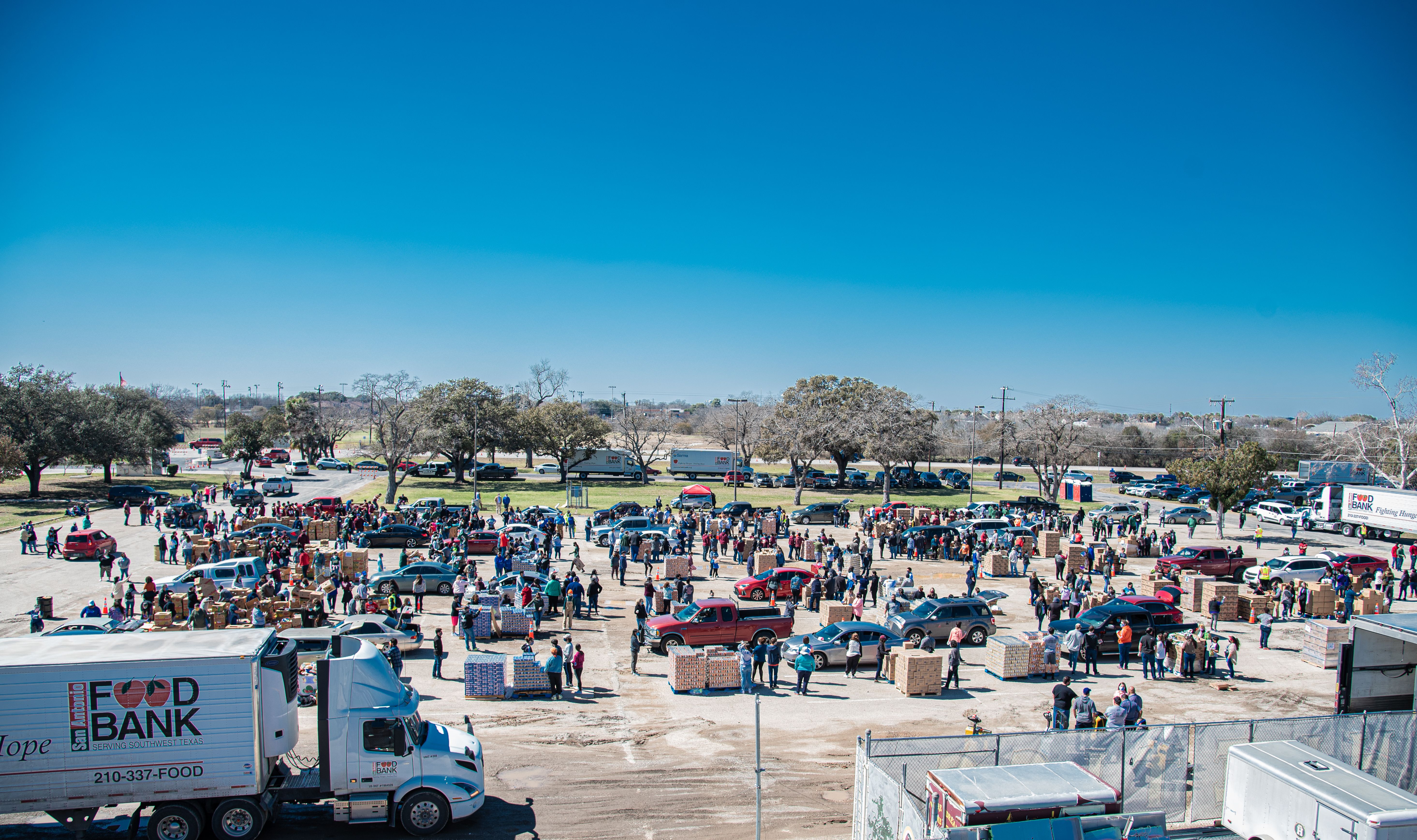 By the end of March 2020, however, demand at the San Antonio Food Bank had doubled from 60,000 to 120,000 people a week.